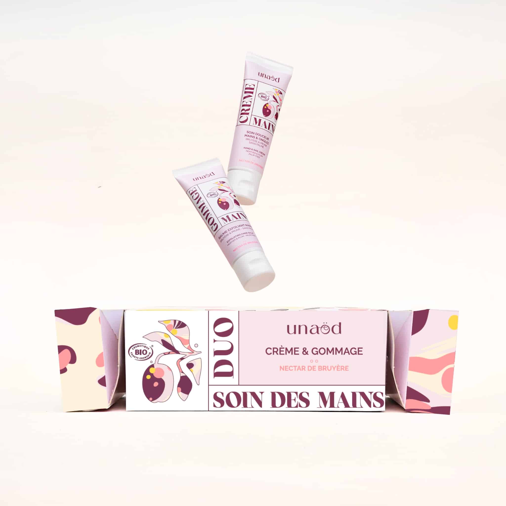 Découvrez le duo parfait pour avoir les mains douces en toute circonstances ! Il réunit le gommage et la crème mains Nectar de Bruyère, tous deux enrichis en huile de prune et extrait de bruyère biologique pour des mains nourries, protégées et apaisées :